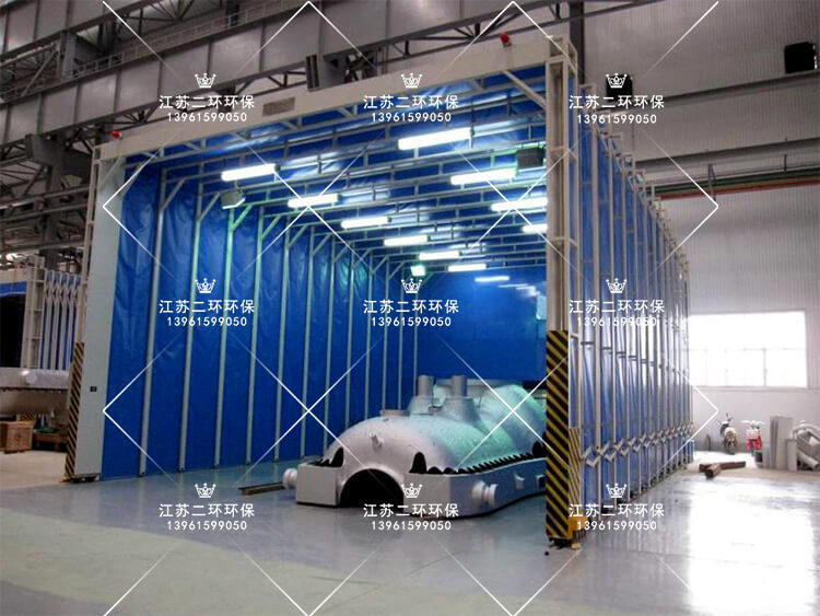 7、对于较大的打磨抛光工件,要考虑到行车叉车的搬运方便,因此可以搭建移动式的伸缩帆布房子。打磨抛光时展开,吊装时收缩起来。