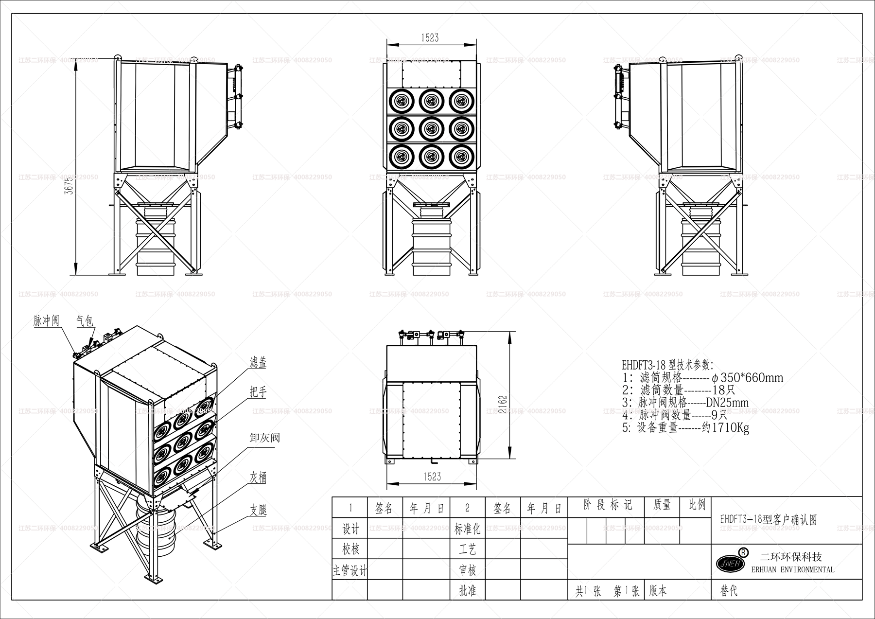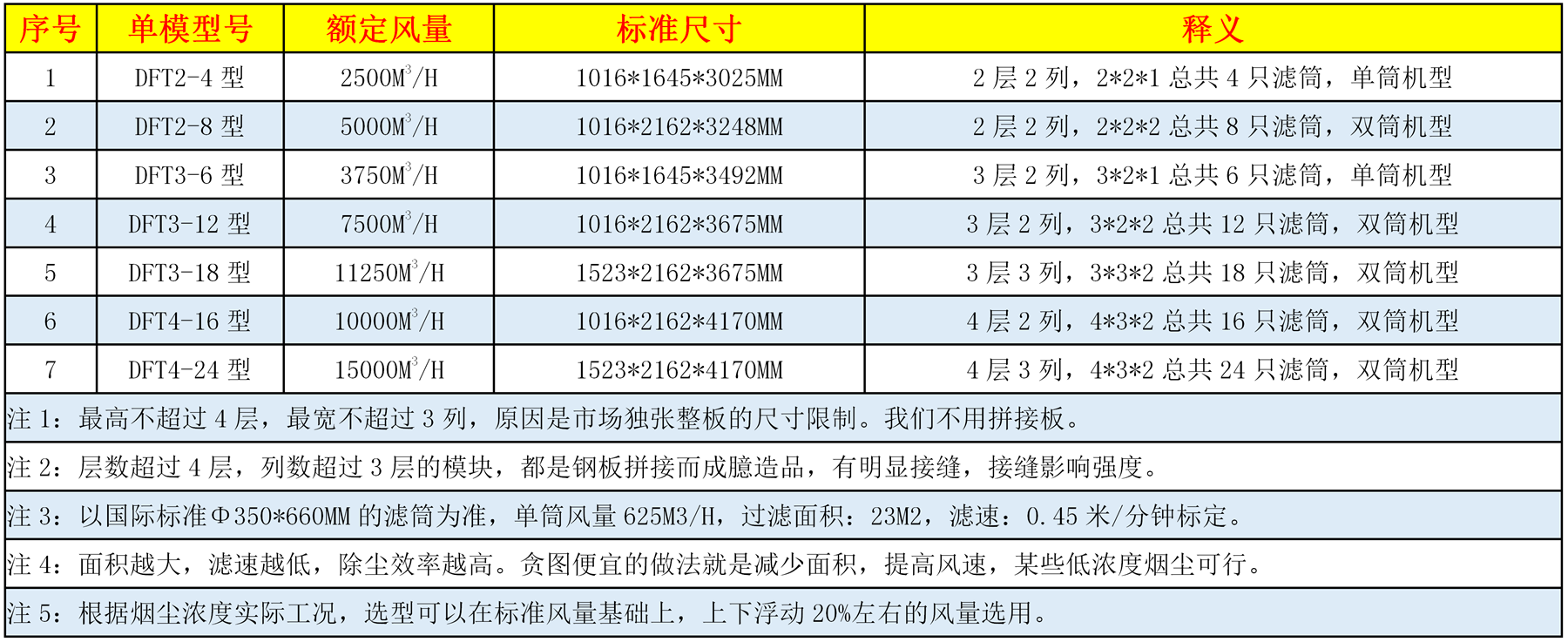 2、滤筒采用的是国际标准规格350*660MM,通常以单筒625风量来标定。
