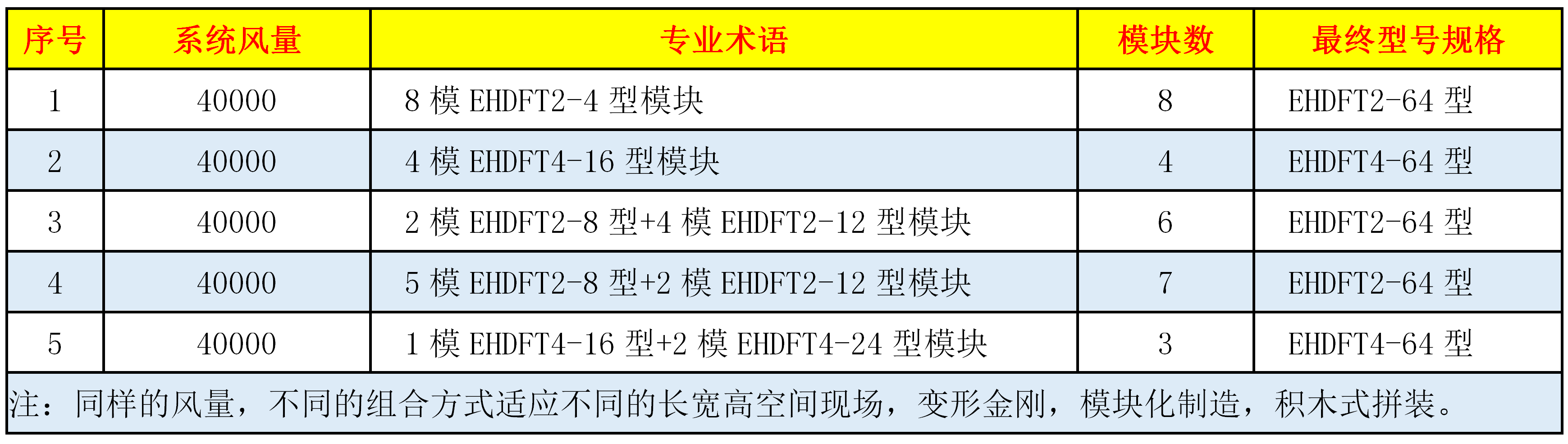 7、例如需求4万风量的花季传媒软件下载黄色版,也可购买2个1.5万风量+1个1万风量的模块组合而成。